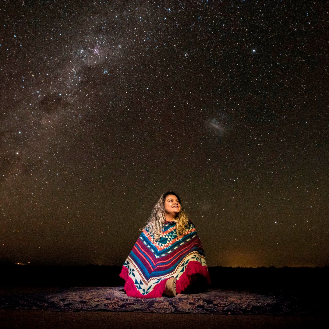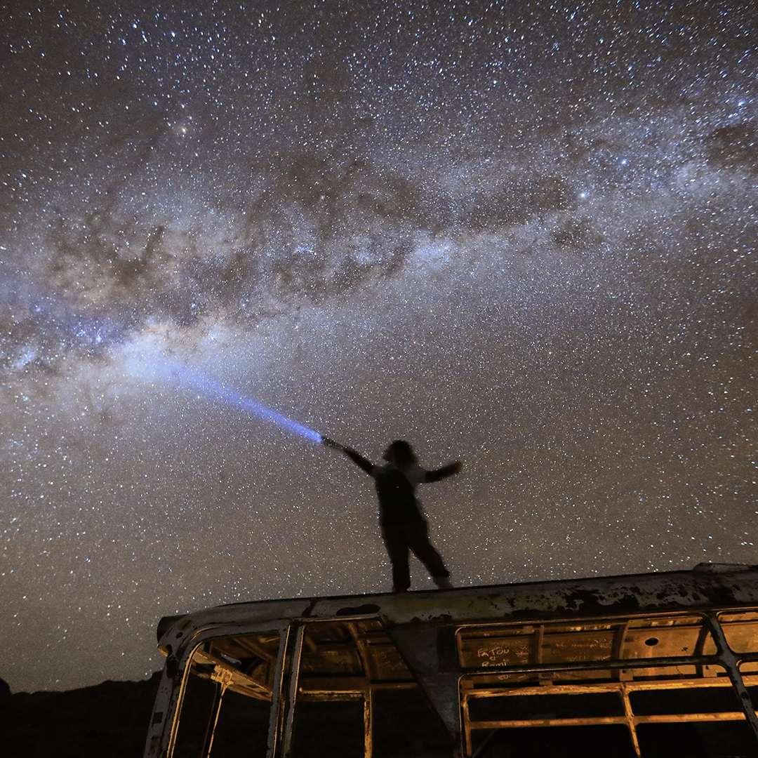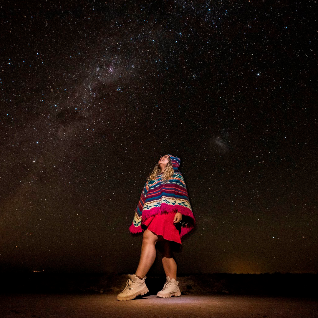 O frio da noite intensifica a sensação de imensidão, enquanto um coquetel aquece e celebra o momento.